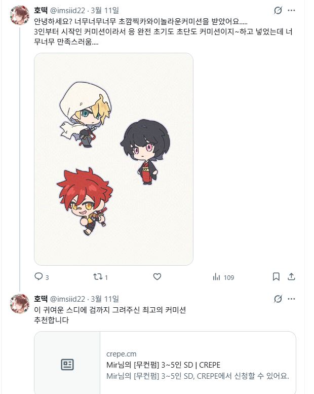 마침 3인부터 신청 가능한 너무너무 귀여운 커미션이 있어서 냅다 애들을 데려갔어요