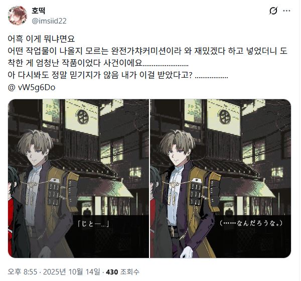 커미션 홍보글을 보자마자 생각했어요"이건 넣어야 한다"인외인간페어 이거 완전 도켄란부 딱맞춤이지개인적으로는 지켜본다~라는 이미지가 제일 강한 건 노리무네라 노리지지와 함께 넣었습니다.멋진 커미션이 있는데 거기에 딱 넣을 페어가 있다는 건 얼마나 아름다운 일입니까... 놓칠수없어 사랑이 가득한 할아버지가 웃고 있지만 냉정하게 내려다보는듯한 구도가 마음에 들어요 이하 그뭔씹설명사니와 취임하자마자 처음 마주한 임무가 케이오 특명이었기에 신임 사니와인 젠에게는 꽤 빡센 임무였겠죠그리고 노리무네 할아버지가 젠혼의 초기 도검남사인것도 뭔가 웃기고 자리꿰찬 할아버지 같아서 마음에 들어하는 점이에요이 할아버지와는 관계성을 좀 더 자세히 풀고 싶은 게 있는데 이건 설명하자면 젠 캐릭터의 특성에 대해 꽤 구구절절 설명해..